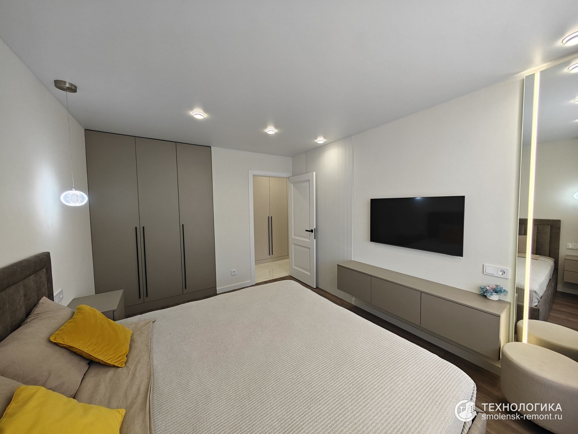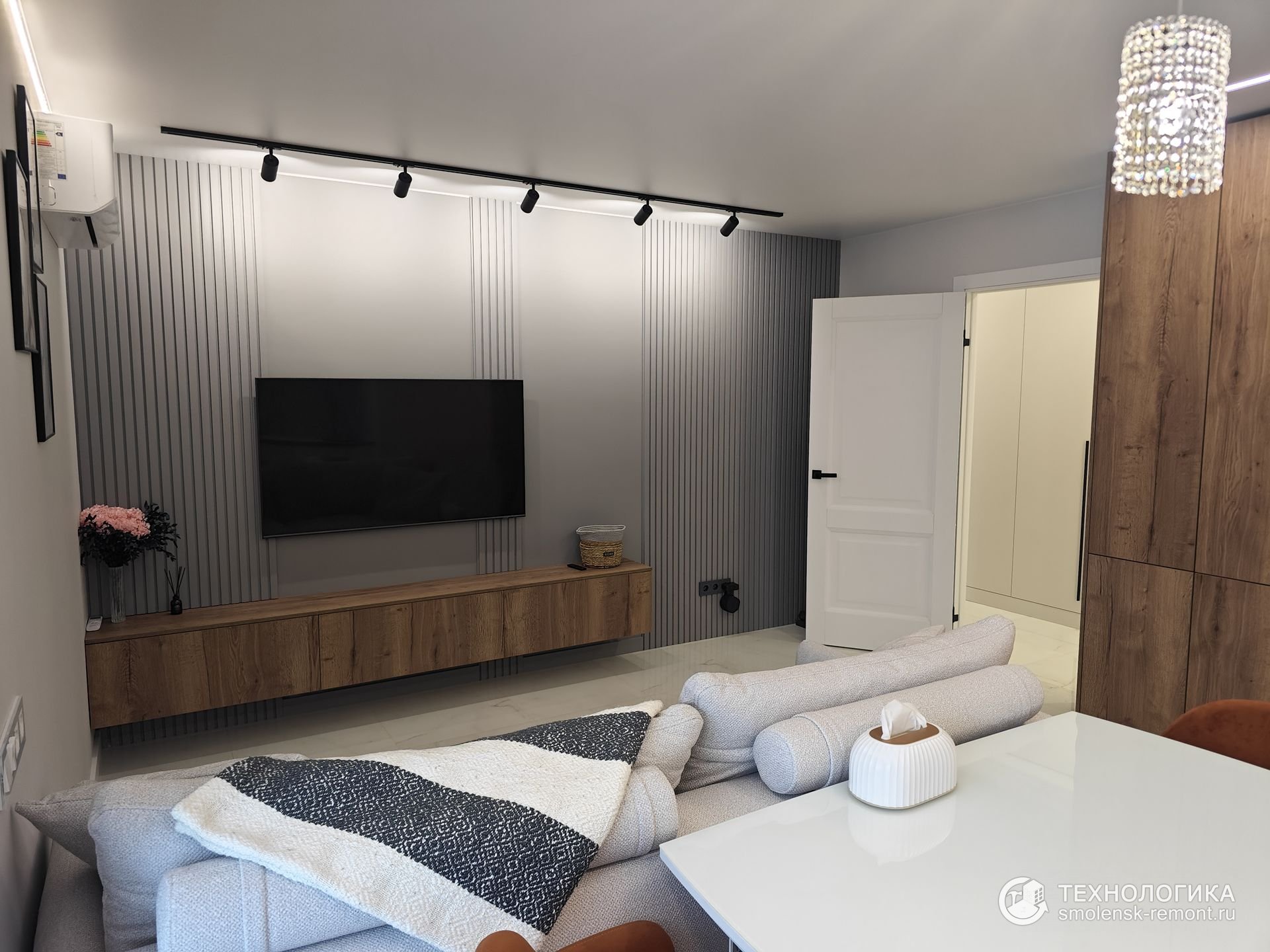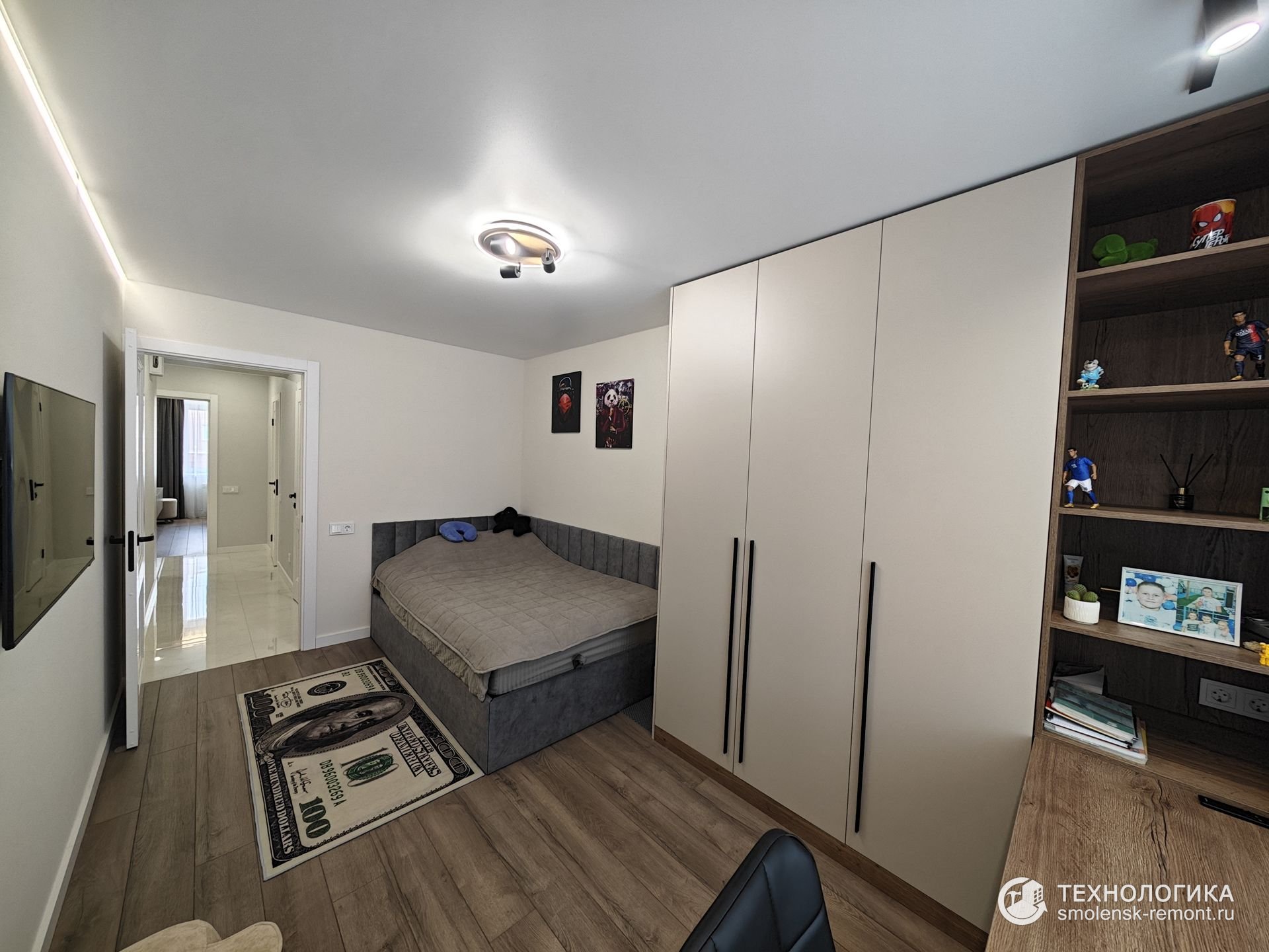 В результате — современное пространство без визуального шума. Чистые линии, выверенные цвета, максимум удобства и минимум лишних деталей.