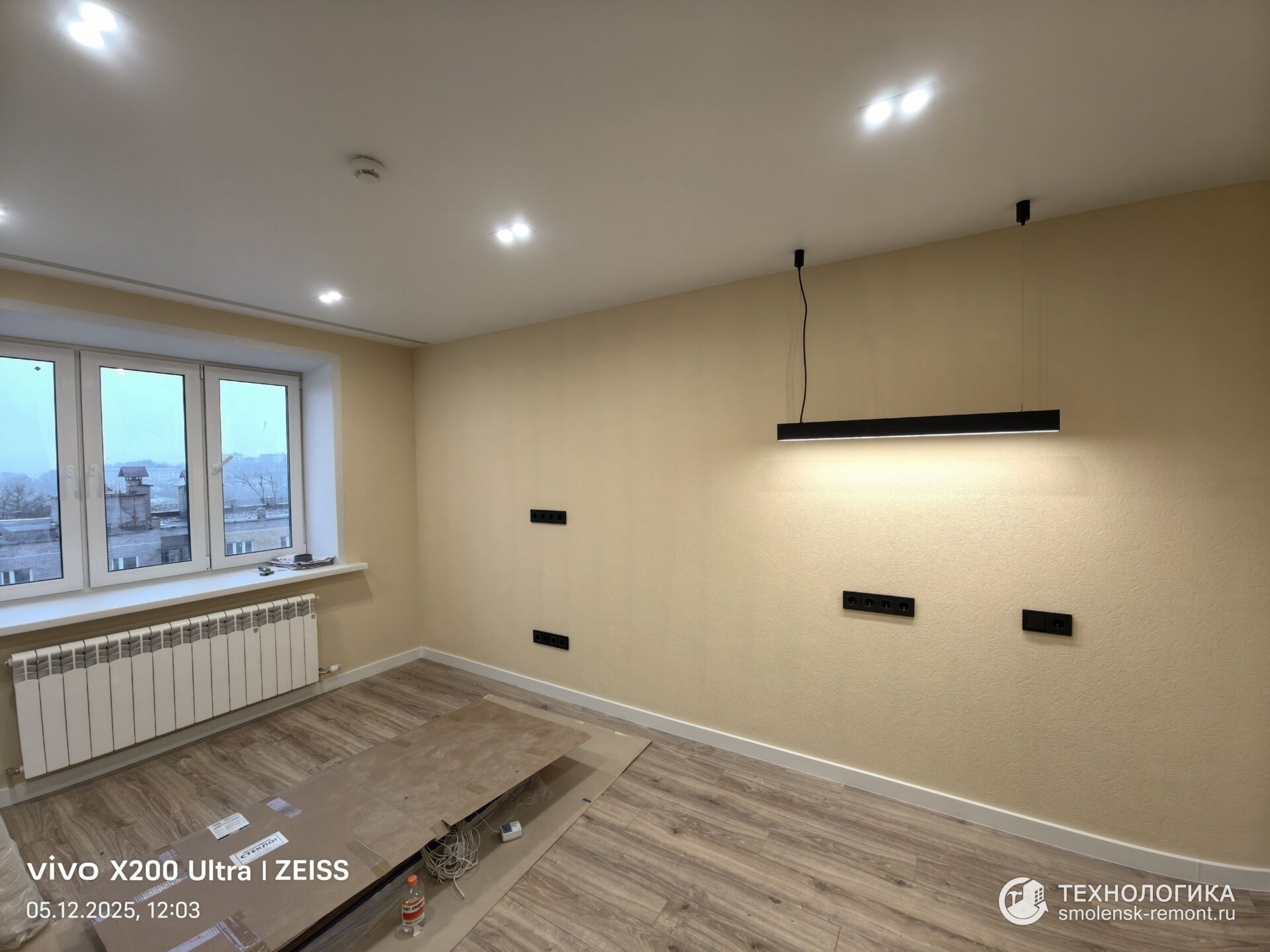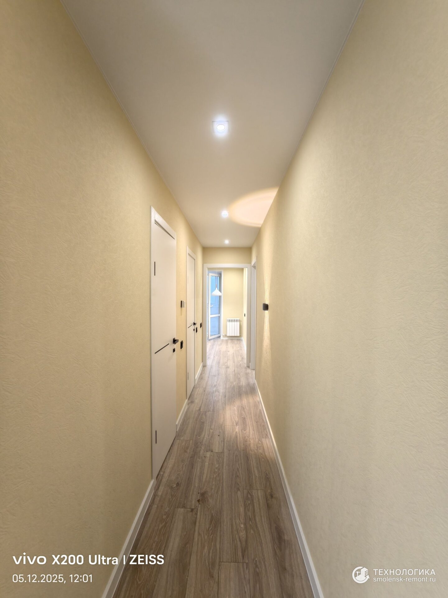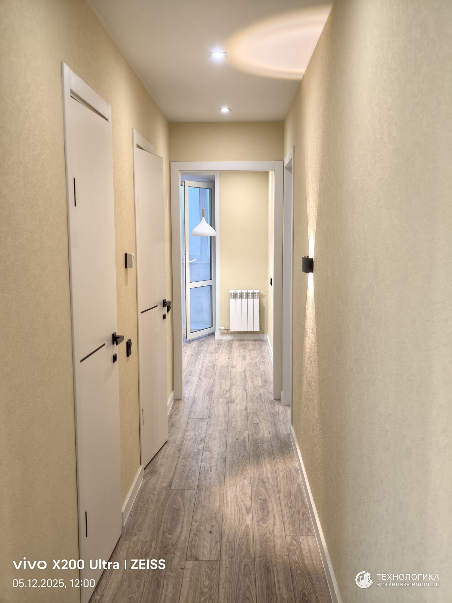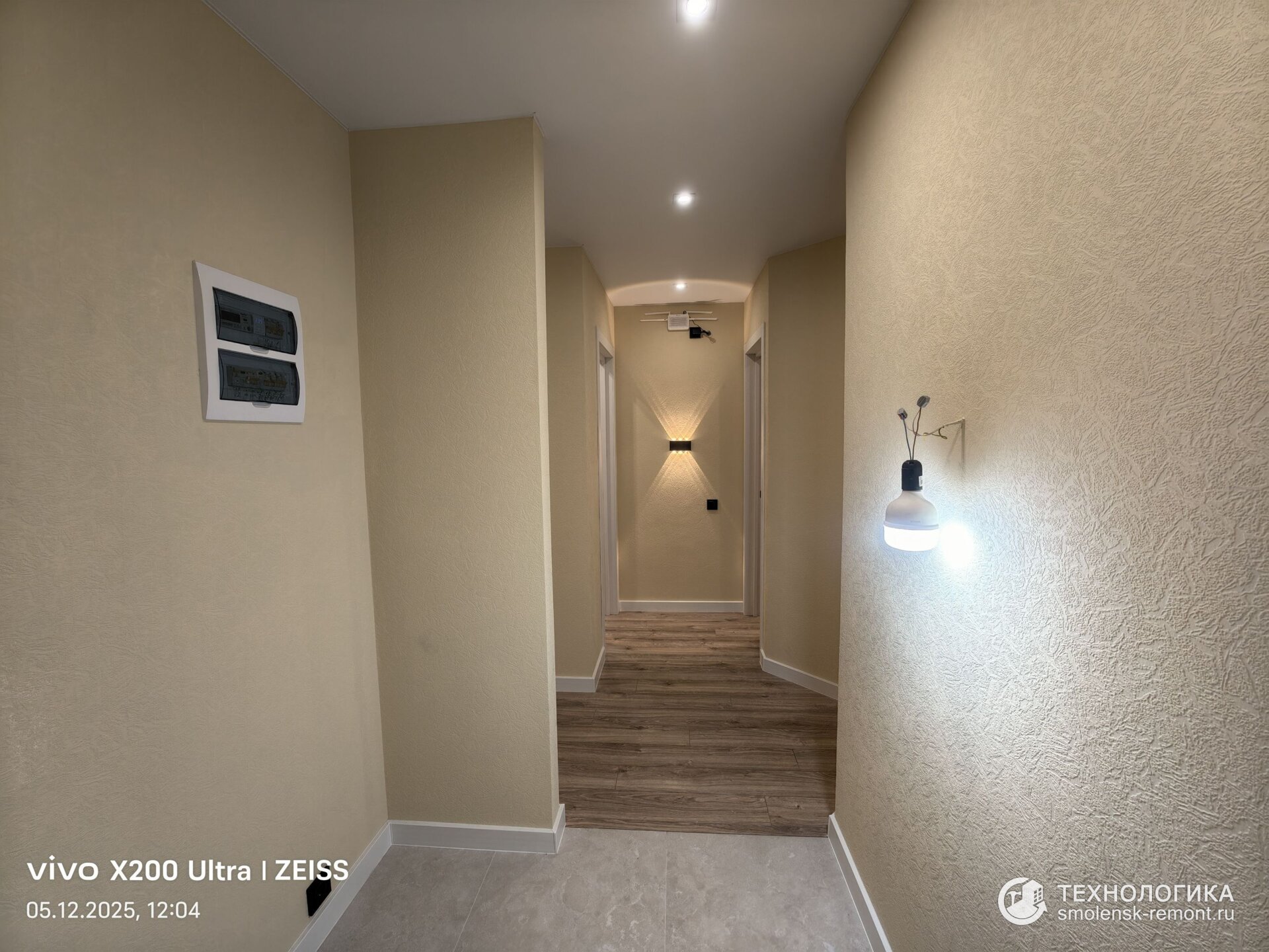 Выполнили комплексный дизайнерский ремонт в новостройке — трёхкомнатная квартира на 7 этаже жилого комплекса «Европейский» по адресу город Смоленск, улица Вяземская, дом 34В. Проект реализован по индивидуальному дизайн-проекту с полной перепланировкой помещений, заменой всех инженерных коммуникаций и применением премиальных отделочных материалов.